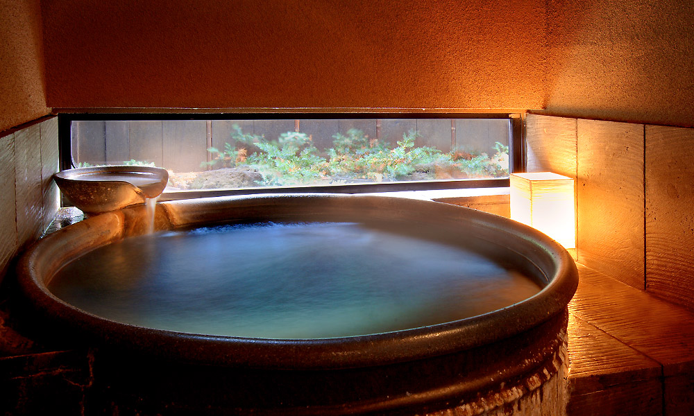 【貳の湯】小さな箱庭が配されたお風呂。
